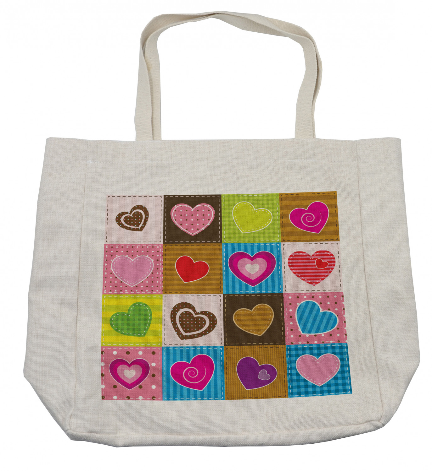 Country Shopping Bag Patchwork Themed Heart Shaped With Varying Backgrounds Love Art Eco Friendly Reusable Bag For Groceries Beach And More 15 5 X 14 5 Cream By Ambesonne Walmart Com